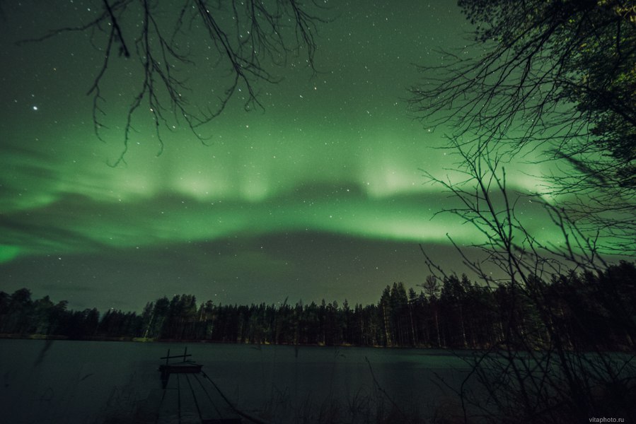 Полярное сияние у поселка Пяозерский, Республика Карелия.